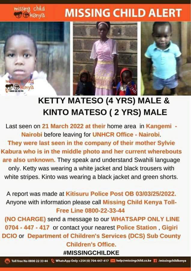 On 21 March 2022, my sister Sylvie, whose husband was murdered in Tanzania, was called for an appointment to the Joint Refugee Service Centre (JRSC) at General Mathenge Road in Nairobi – to be never seen again. She and her two children disappeared from the UNHCR gate and have never been found. The matter was immediately reported, and police investigations – even from higher levels – were conducted, but they were not found, while UNHCR didn’t even respond to official letters from the police. To date, the whereabouts of my sister Sylvie and her two small sons remain unknown. Despite repeated attempts, UNHCR has not provided any assistance or protection to our family and did nothing to help with regards to the disappearance of my sister and her boys.